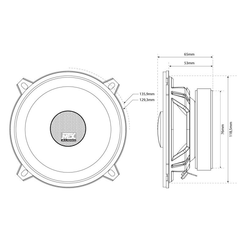 Difuzoare coaxiale TX4 Ø13cm 5,25 "2-cai 70W RMS 4Ω cu și tweeter nedymium cu cupolă de mătase